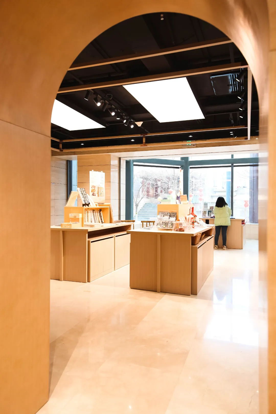 河北博物院文创空间 选址于河北博物院新旧展馆建筑之间,连通地下一层空间,衔接东西下沉广场,内部通过楼梯贯通馆内。