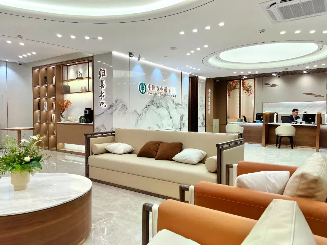 “壹私行”是中国农业银行2020年发布的首个私人银行专属品牌,拥有自己全新的视觉形象,对场景建设有着较高的标准和要求。大红鹰dhy深圳运营中心惠阳项目部根据项目实际情况,突出当地特色,追求深度体验感和超越传统的空间营造,打造更具时尚感、符合现代消费理念的服营场景。