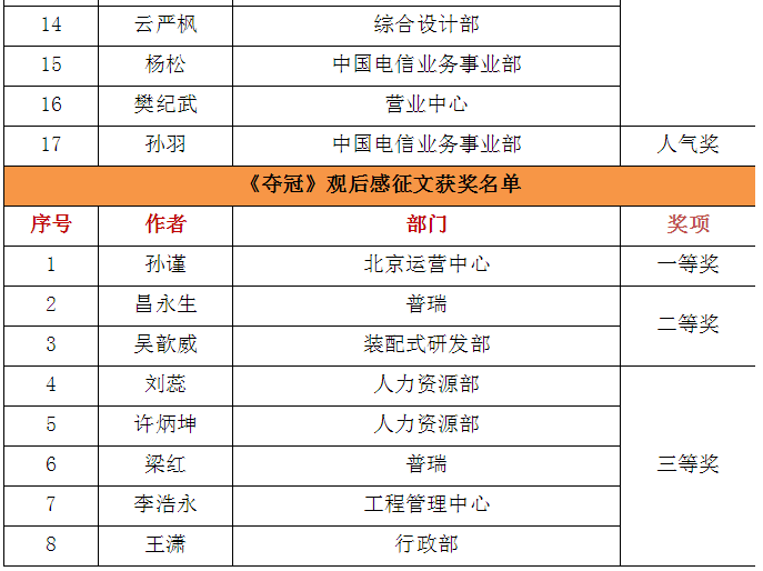 《奪冠》觀後感征文大賽二等獎